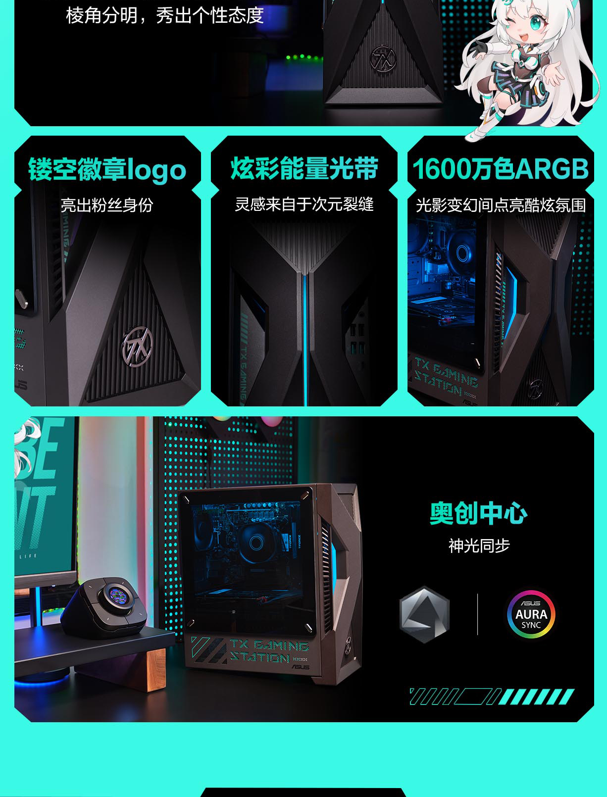 华硕天选6X 台式电脑台式机游戏电竞设计电脑主机 侧透机身 神光同步