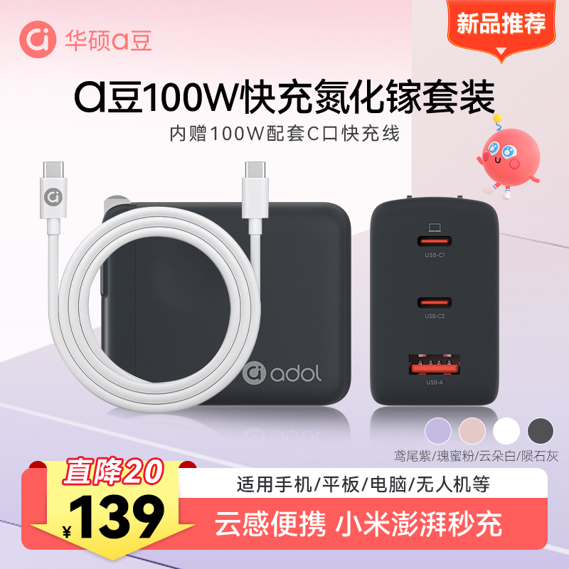 【a豆周边】a豆全能秒充100W氮化镓快速充电器套装 陨石灰
