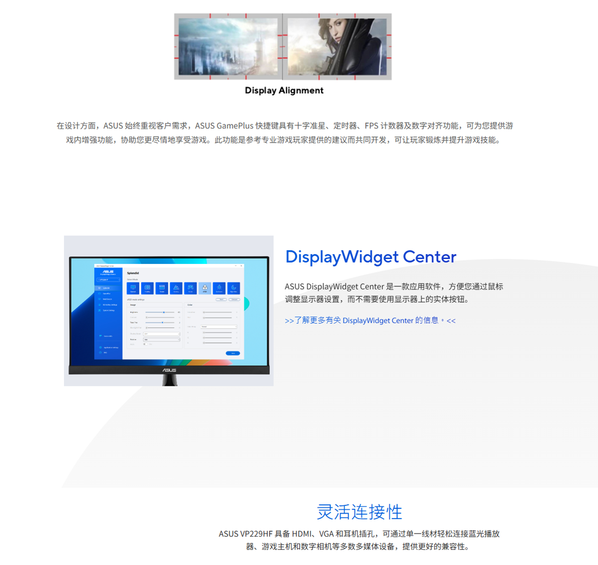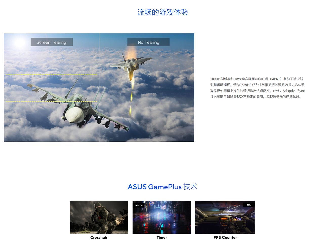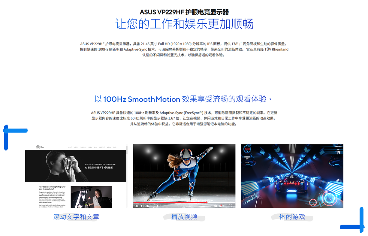 ASUS VP229HF 21.5英寸显示器 , FHD (1920 x 1080), IPS, 窄边框, 100Hz