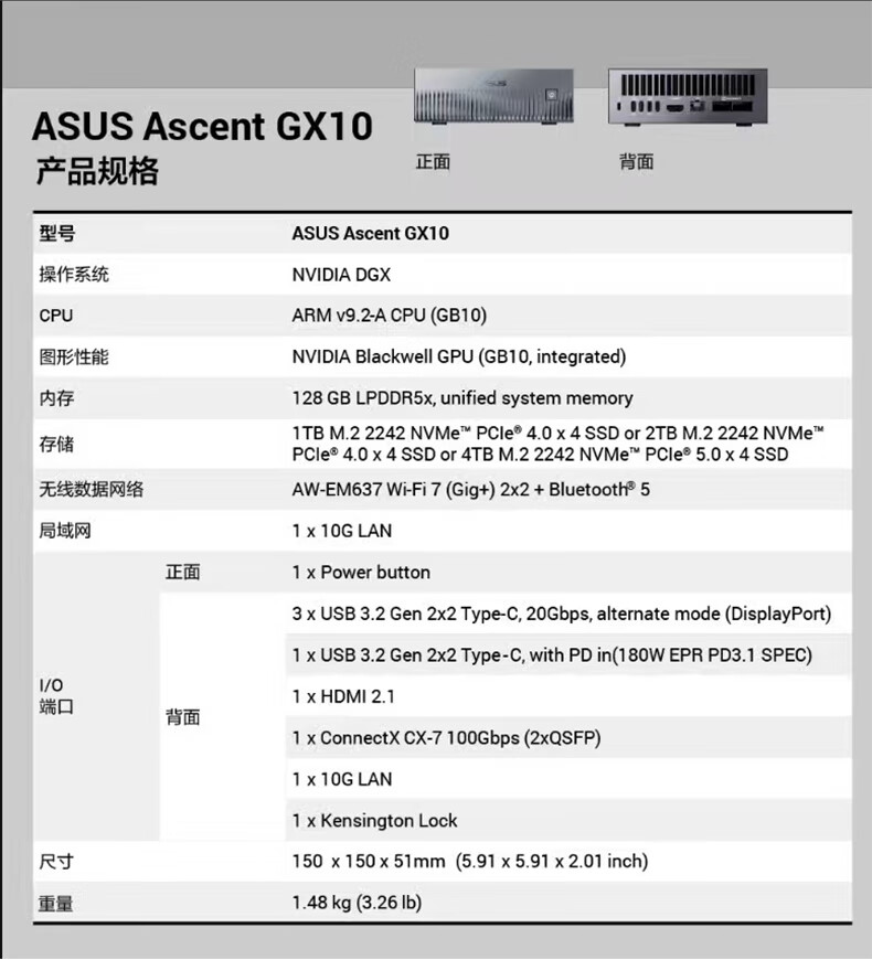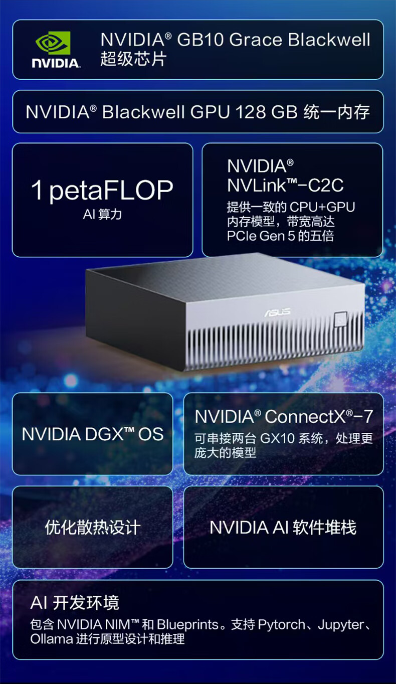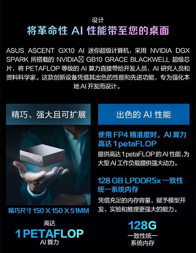 华硕(ASUS)NVIDIA Ascent GX10 AI超级计算机开发部署边缘运算mini迷你主机