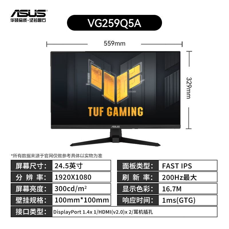TUF VG259Q5A 24.5英寸电竞显示器 200Hz Fast IPS,0.3ms GTG