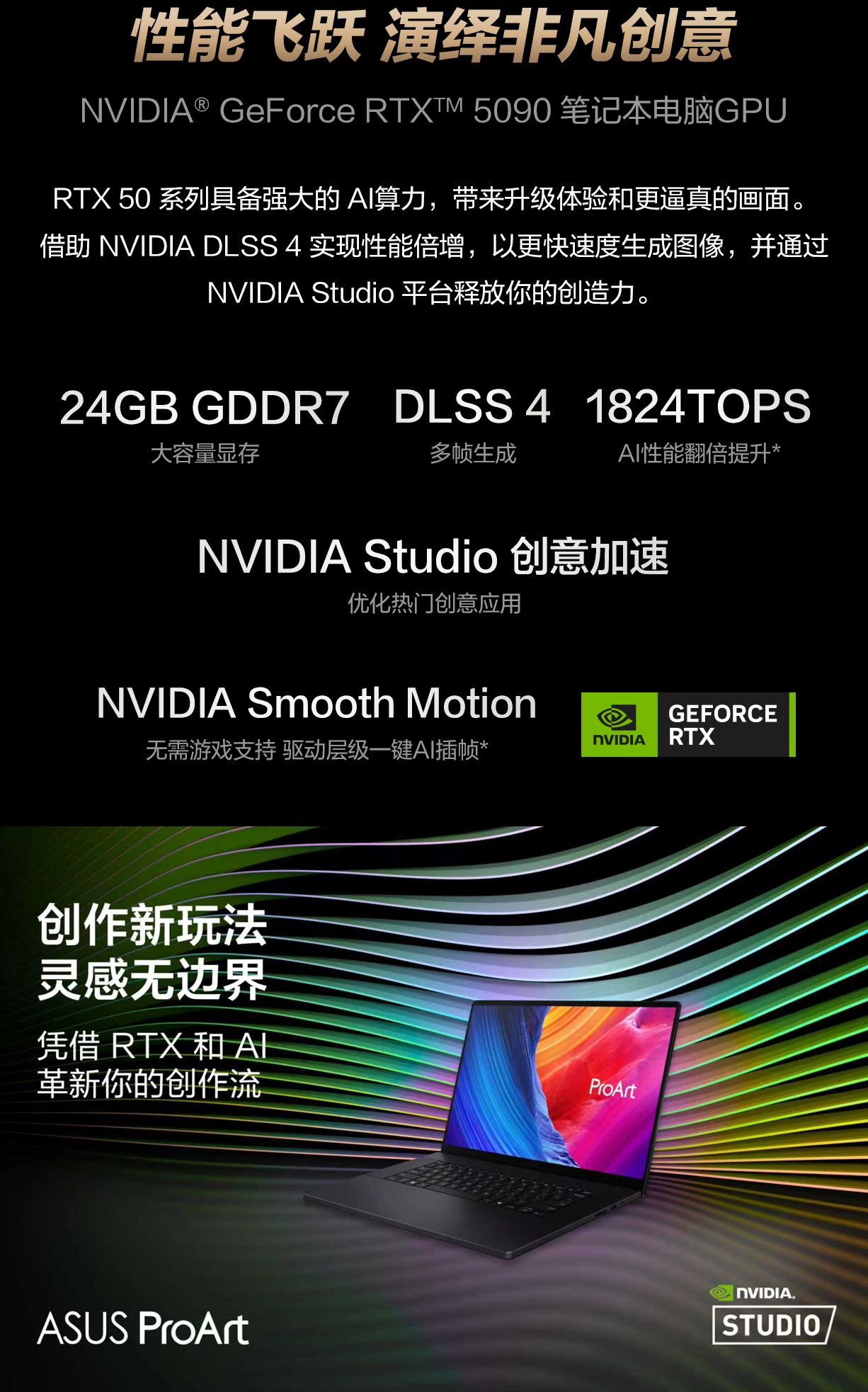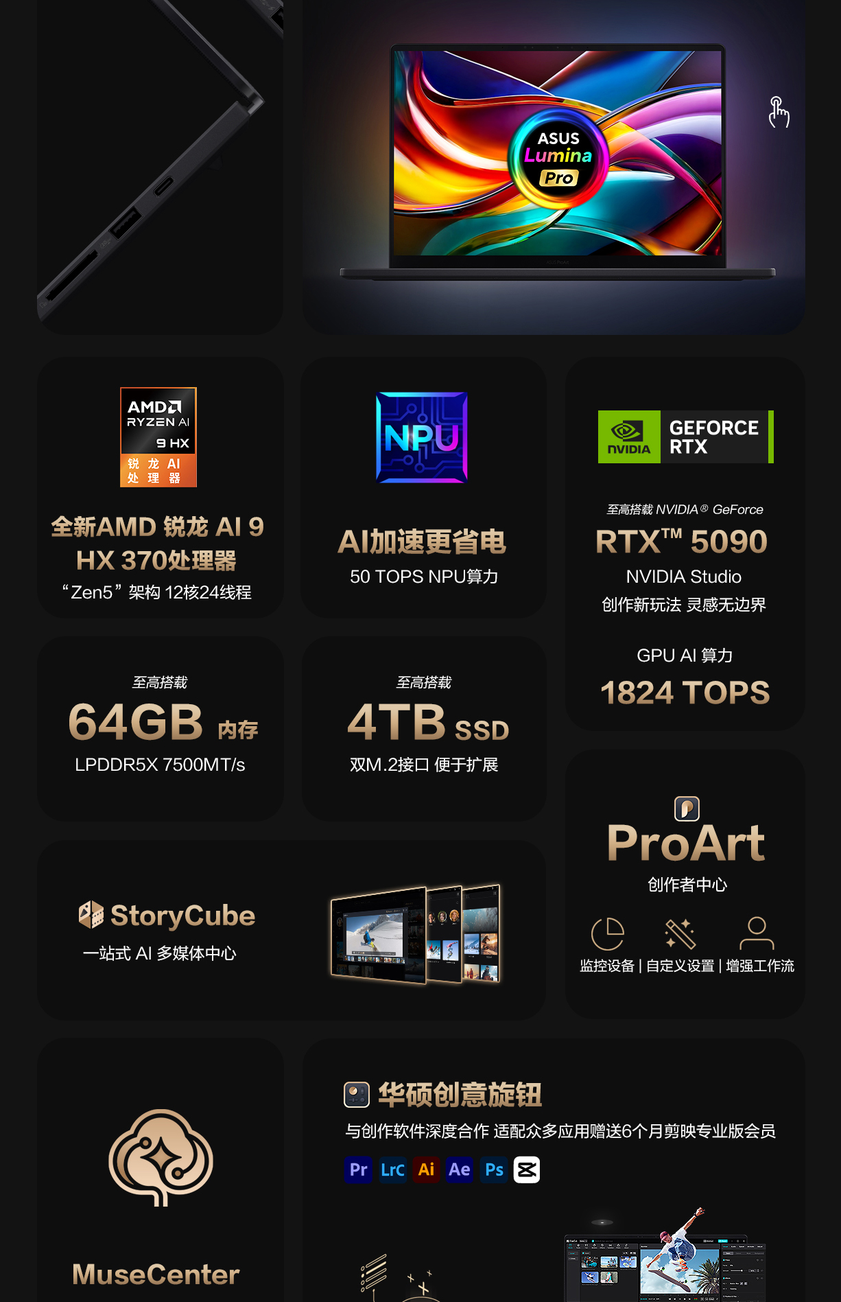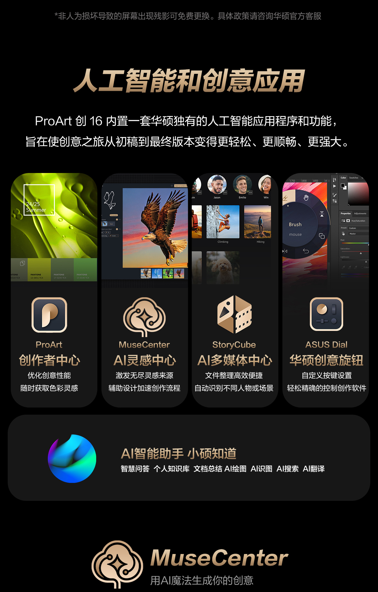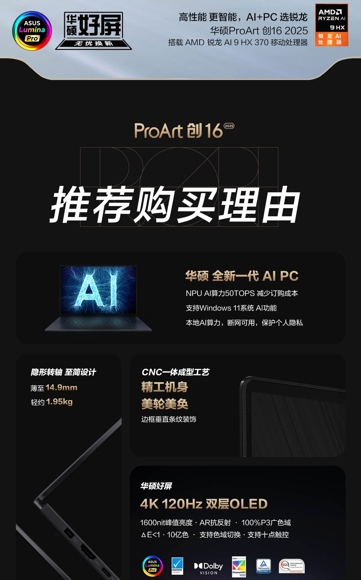 华硕ProArt创16 2025 AMD锐龙AI 9 16英寸触控屏性能轻薄设计AI笔记本电脑