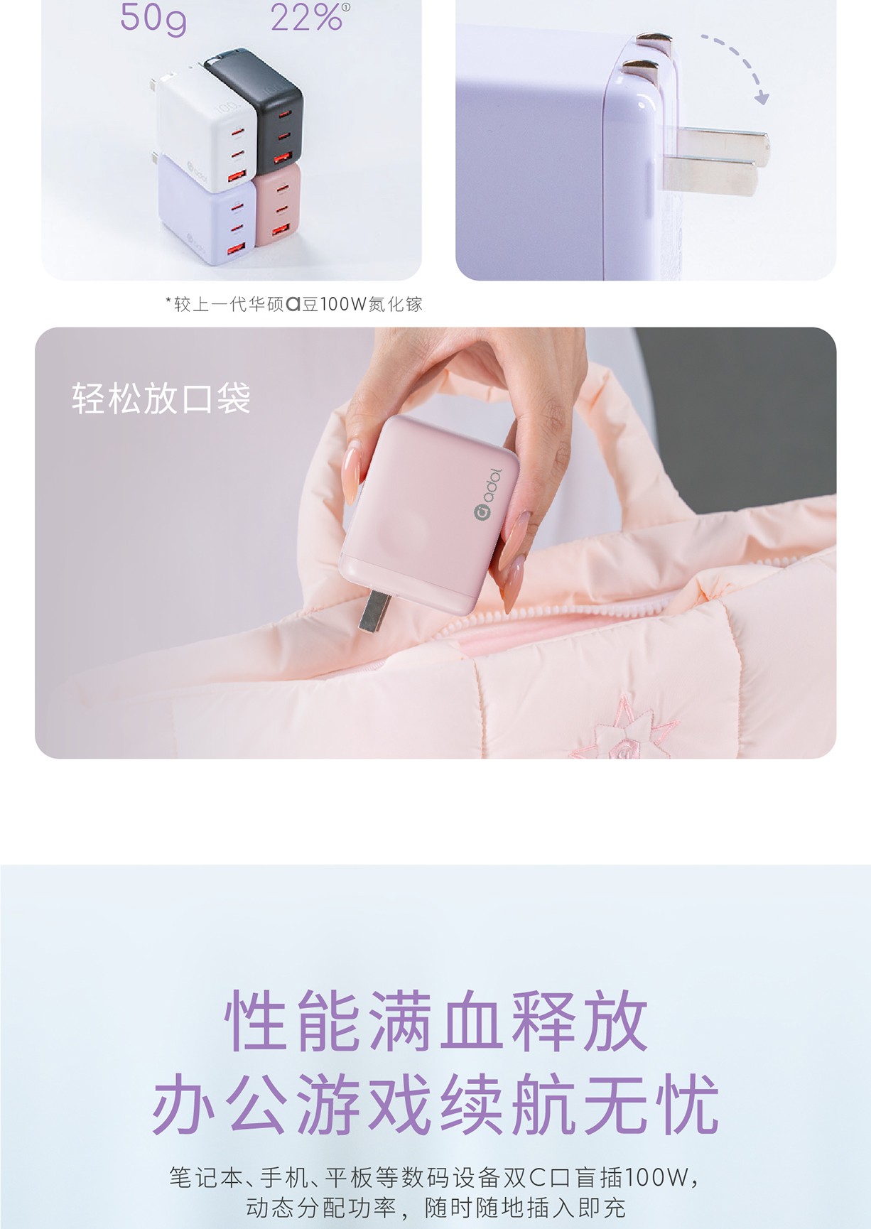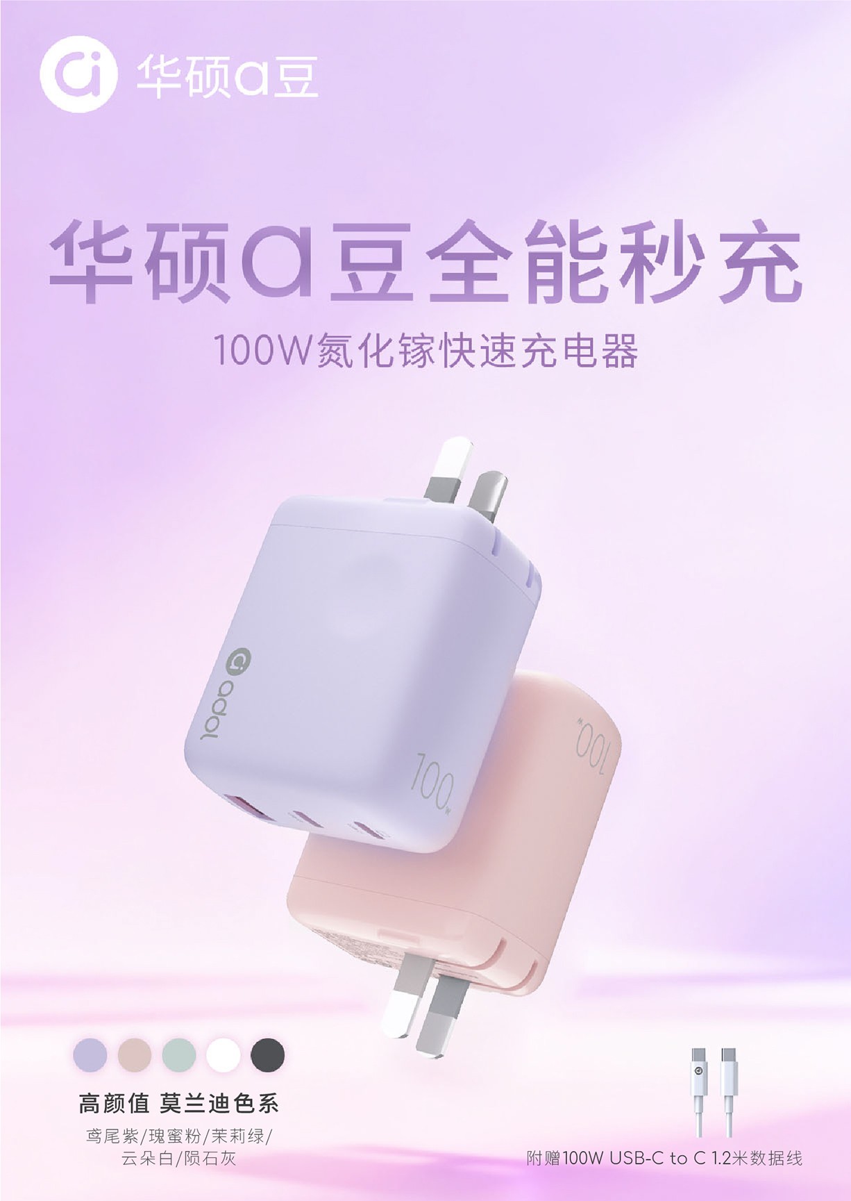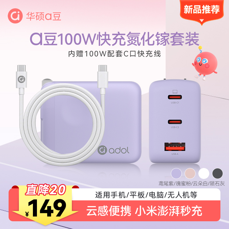 【a豆周边】a豆全能秒充100W氮化镓快速充电器套装 鸢尾紫