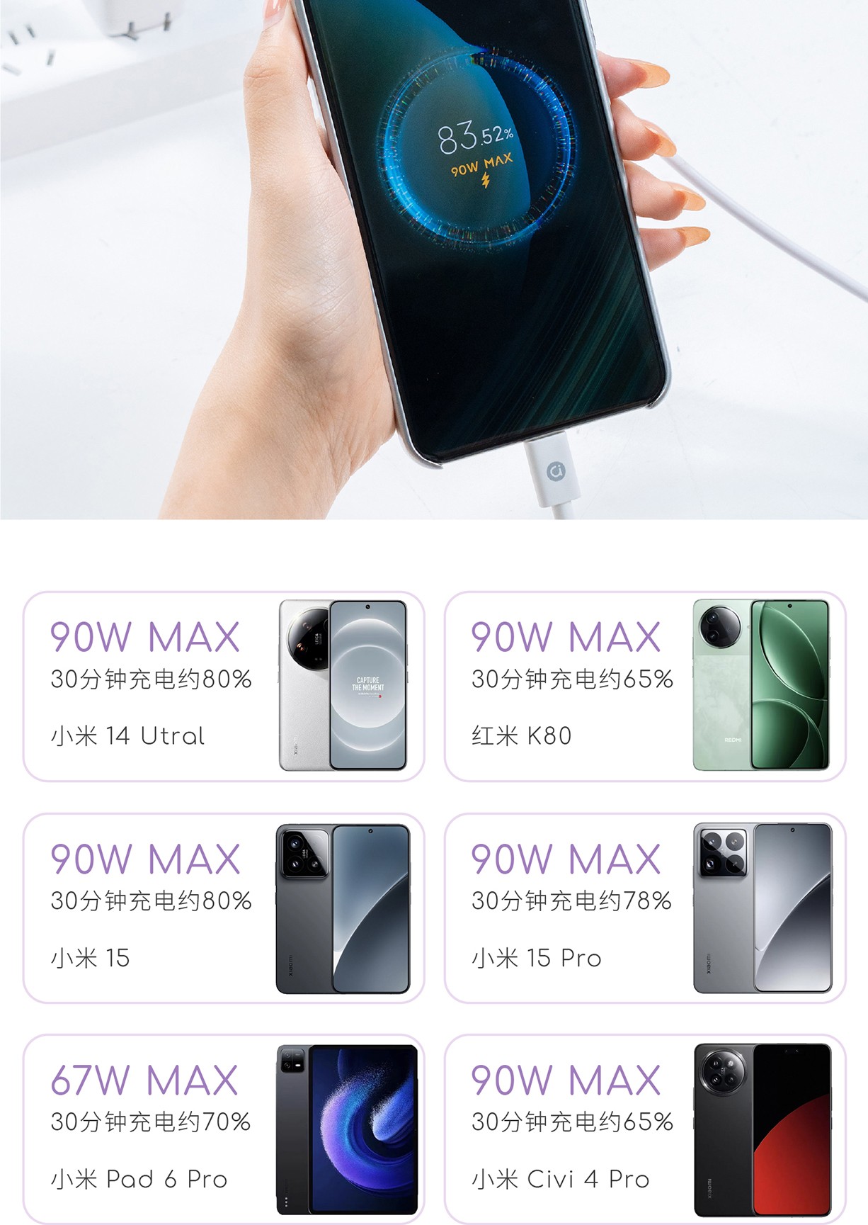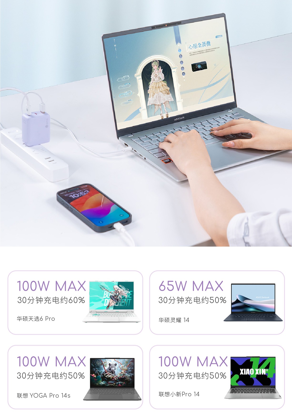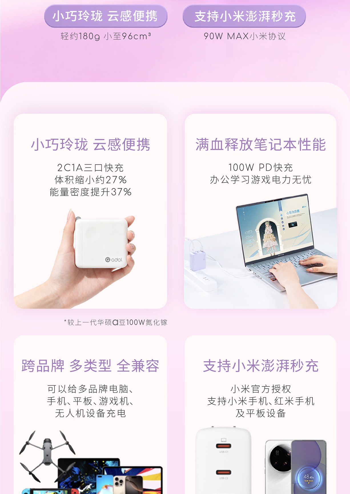 【a豆周边】a豆全能秒充100W氮化镓快速充电器套装 鸢尾紫