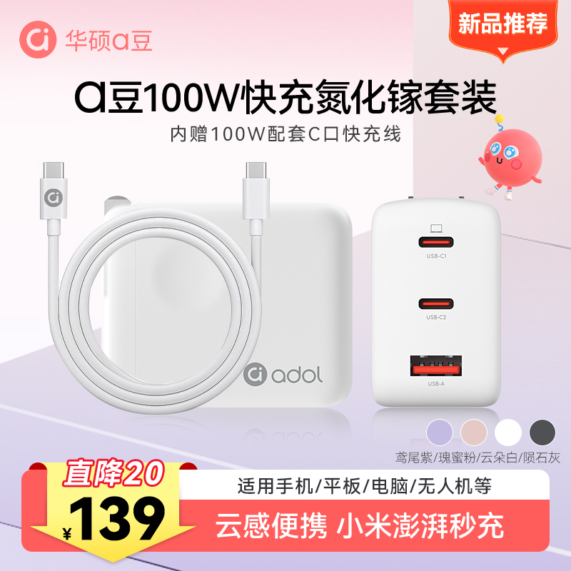 【a豆周边】a豆全能秒充100W氮化镓快速充电器套装 云朵白